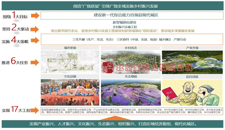 圍繞建設(shè)新一代綜合能力百強(qiáng)縣現(xiàn)代城區(qū)的總目標(biāo),堅(jiān)持新型城鎮(zhèn)化建設(shè)和鄉(xiāng)村振興“雙輪驅(qū)動(dòng)”,實(shí)施三生共融(生產(chǎn)、生活、生態(tài))、三區(qū)協(xié)同(中部、南部、北部)、城鄉(xiāng)融合、產(chǎn)鎮(zhèn)互動(dòng)“四大策略”,推進(jìn)城市更新、鄉(xiāng)村再造、產(chǎn)業(yè)升級(jí)、文化活鎮(zhèn)、生態(tài)增值、居民創(chuàng)富“六大重點(diǎn)任務(wù)”,實(shí)施區(qū)域交通樞紐建設(shè)、城市有機(jī)更新、鄉(xiāng)村文化振興等“十七項(xiàng)重點(diǎn)工程”,實(shí)現(xiàn)產(chǎn)業(yè)振興、人才振興、文化振興、生態(tài)振興、組織振興,打造區(qū)域經(jīng)濟(jì)樞紐、現(xiàn)代化城區(qū)、城鄉(xiāng)融合發(fā)展新典范。