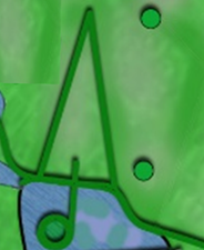 3.2 “魔幻傘”田埂,把陸地部分的田埂“傘冠”,和水域部分的“傘把”造型結(jié)合,產(chǎn)生魔幻情趣;