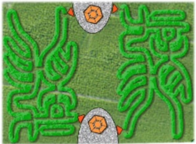 6.1玉米迷宮:玉米田設(shè)計(jì)成“雙龍戲珠”造型的玉米迷宮;兩顆“珠子”由玉米塔堆砌而成。