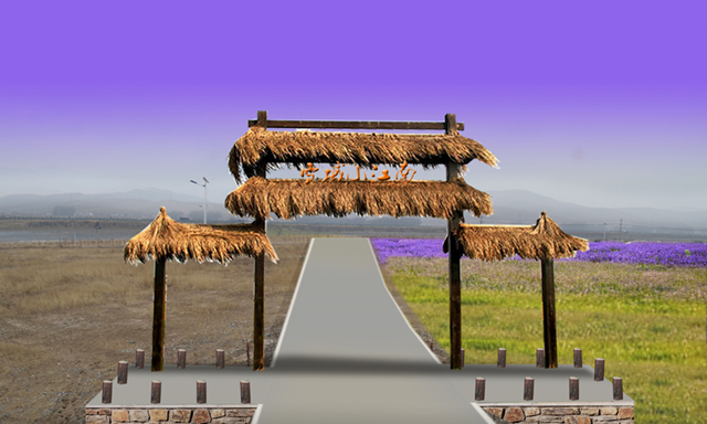 1.1山門(mén):至道規(guī)劃院的設(shè)計(jì)理念為“造型高大但不復(fù)雜”, 材質(zhì)以原木、茅草為主,風(fēng)格上呼應(yīng)“雪域小江南”定位。