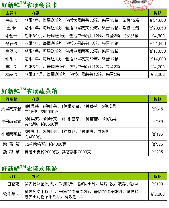 典型案例:天津好新鮮會員制私人農場http://www.haoxinxian.com.cn/index.asp 從下表可以看出,除了配送業(yè)態(tài)外,還有“農場歡樂游”這樣的休閑業(yè)態(tài)。