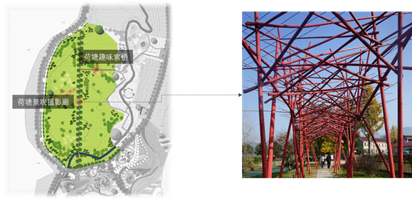 (1)重點(diǎn)項(xiàng)目是“荷塘景觀(guān)攝影廊道”。配套項(xiàng)目有“荷塘趣味索橋”