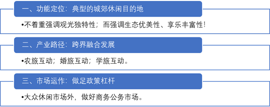 作為一個(gè)典型縣城近郊田園綜合體規(guī)劃項(xiàng)目。策劃定位主打本地化休閑度假,以及婚慶、兒童研學(xué)等“旅游+“產(chǎn)業(yè);所以觀(guān)光產(chǎn)品策劃并沒(méi)有作為重點(diǎn);此外作為鄉(xiāng)村旅游扶貧點(diǎn),該村還有較好的政策扶持,因此我們策劃把這個(gè)杠桿做足,農(nóng)副特產(chǎn)加工銷(xiāo)售也作為一項(xiàng)重要規(guī)劃。
