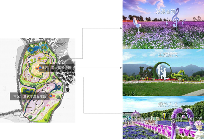 (1)北區(qū)“薰衣草婚紗園“:側(cè)重觀(guān)光與婚紗攝影。