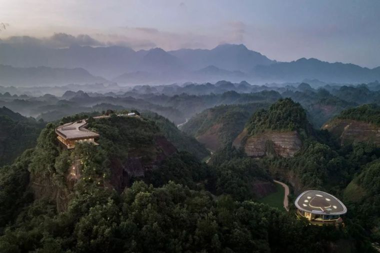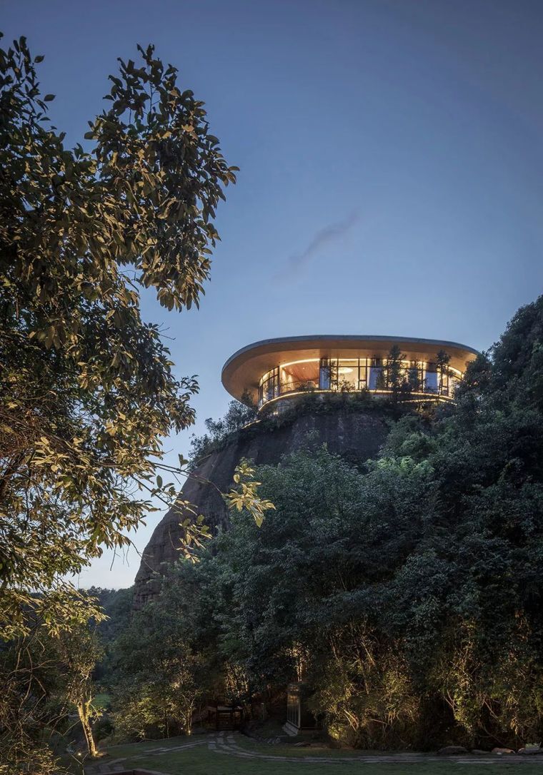 自在平江野奢酒店項(xiàng)目的三期鷹巖崖居,坐落在群山之巔,由頂薈、巖上、子崖會三棟建筑組成,既獨(dú)自成章,又遙相呼應(yīng)。其不同以往的獨(dú)特性,是所有客房被設(shè)置在了山頂,擁有會當(dāng)凌絕頂?shù)囊曇?,一覽眾山小的格局。蕩胸生層云,天地自在親。