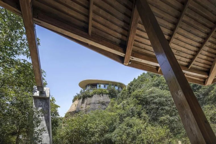 子崖會整體為全木構(gòu)建筑(主要結(jié)構(gòu)連接處為鑄鐵連接件),天然材質(zhì)增加了建筑和自然的融合感。衛(wèi)生間、化妝間等輔助功能都被設(shè)置在了這個(gè)木構(gòu)場所的平臺之下,使其活動區(qū)域的整體結(jié)構(gòu)表現(xiàn)得更加純粹完整、和諧自然。