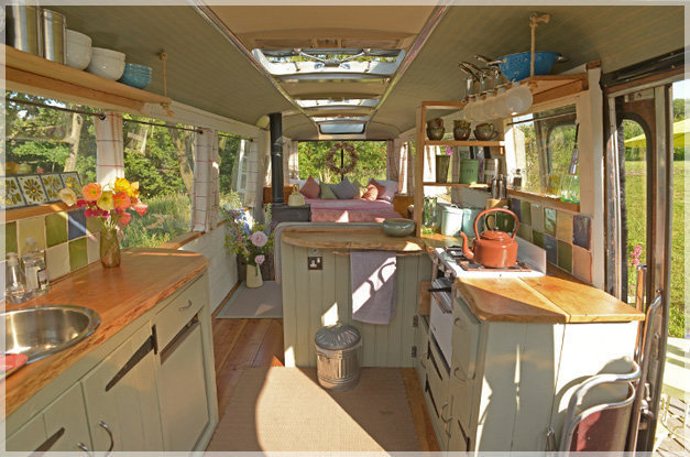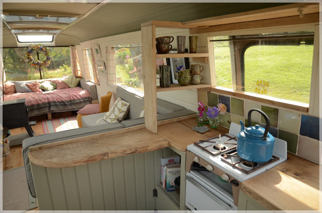 來到此處的旅客能享受設(shè)備齊全的美麗木制廚房,除了可任意使用照片中色彩豐富的廚房用具,還提供了英國(guó)茶、咖啡、牛奶、和檸檬蛋糕自由享用,難以相信自己其實(shí)是站在巴士里