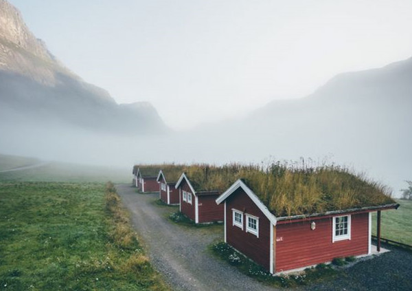 美麗的斯堪的納維亞地區(qū)歷來以倡導(dǎo)自然的態(tài)度而聞名遐邇,事實證明,北歐人對待“天人合一”這件事如此認真,以至他們真的把草地搬到了自家的屋頂上。