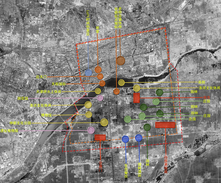 (3)神都主題文化片區(qū):主要包括遺址植物園、新博物館、國(guó)花園、唐宋名人園林酒店、神都主題文化園。