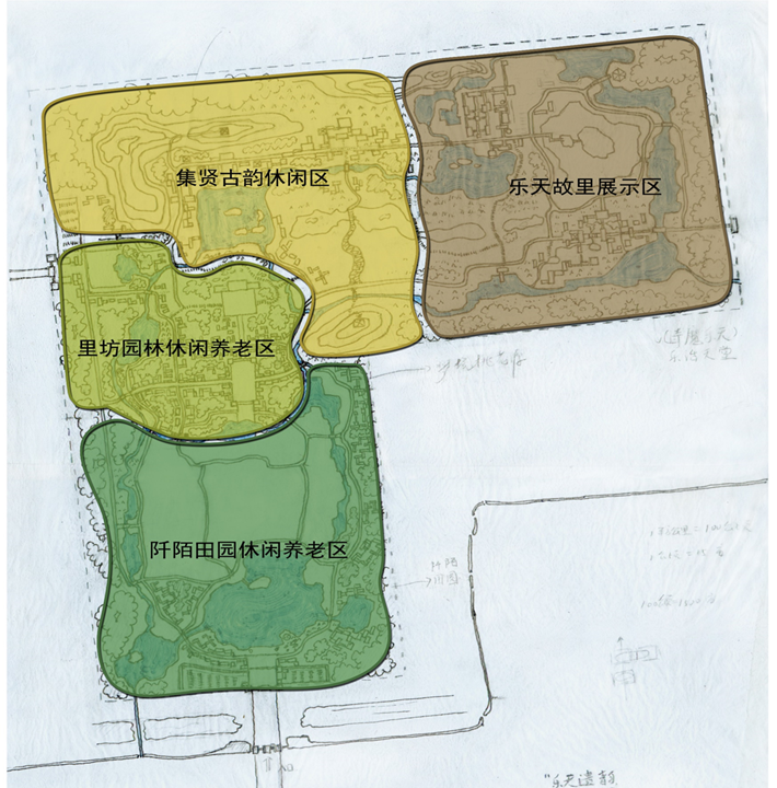 (4)園林、莊園休閑養(yǎng)老片區(qū):以莊園和園林的空間形態(tài),對(duì)接運(yùn)作養(yǎng)老產(chǎn)業(yè)。莊園和園林區(qū)分在于所利用農(nóng)業(yè)用地的性質(zhì)差別