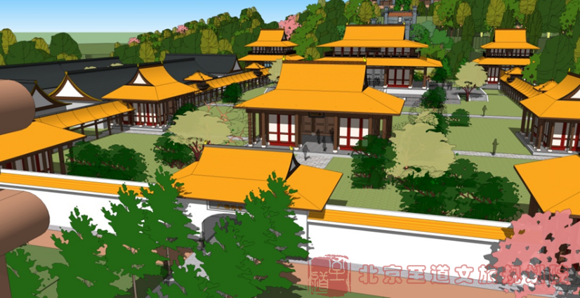 在通天寺西側(cè)溝谷內(nèi)建設(shè)祗園精舍禪修體驗(yàn)區(qū),各個(gè)禪房依地形地貌采用自然式布局,并用茂密的植被營(yíng)造清凈的氛圍,面向佛教深度體驗(yàn)游客、居士,開展禪修靜養(yǎng)式度假。