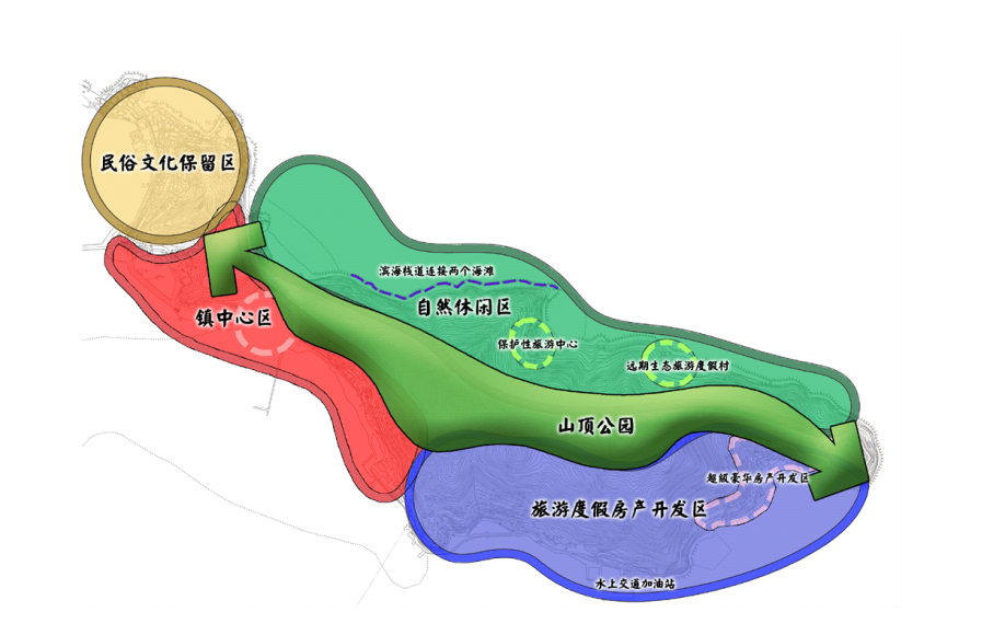 旅游度假房產(chǎn)區(qū):南側(cè)發(fā)展成度假房產(chǎn)去,,既是小眾高端度假產(chǎn)品,也是大眾旅游的開發(fā)杠桿