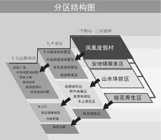 十大品牌項目:打造鳳凰廣場、中高檔景觀別墅、“銀發(fā)”公寓、高檔會所、旅游度假村、桂花旅游別墅、桂花長廊、水上F1、竹林野趣、勵志鍛煉城堡十個品牌項目,用項目吸引游客。