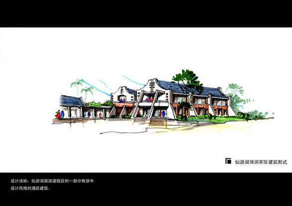 一個核心:為了突出仙源湖旅游度假的功能,分區(qū)以鳳凰度假村為核心,通過村內的度假會所、景觀度假別墅、度假酒店的建設,創(chuàng)造生態(tài)度假環(huán)境。