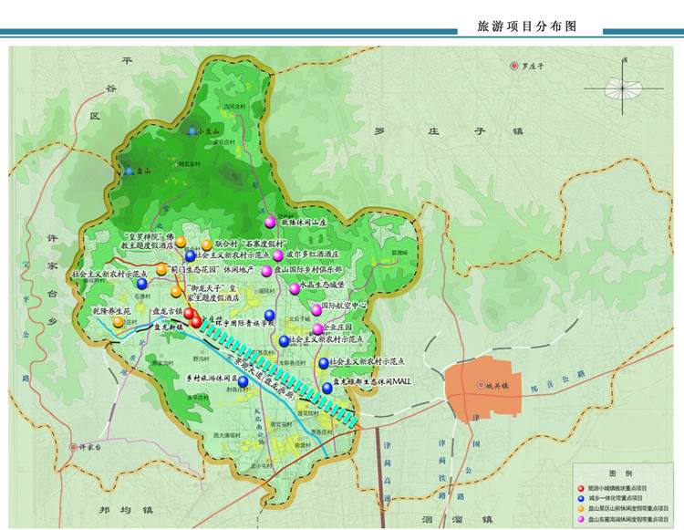 官莊休閑度假區(qū)的旅游產(chǎn)業(yè)布局,是在對盤山歷史文化延續(xù)、遺址遺跡保護的前提下,以當(dāng)今和未來旅游市場需求為指導(dǎo),同時將與旅游開發(fā)、小城鎮(zhèn)建設(shè)、社會主義新農(nóng)村建設(shè)緊密結(jié)合,實現(xiàn)自然山水觀光、歷史遺址恢復(fù)、文化旅游、休閑度假、鎮(zhèn)區(qū)環(huán)境建設(shè)與土地開發(fā)的復(fù)合功能,創(chuàng)造綜合效益最大化。