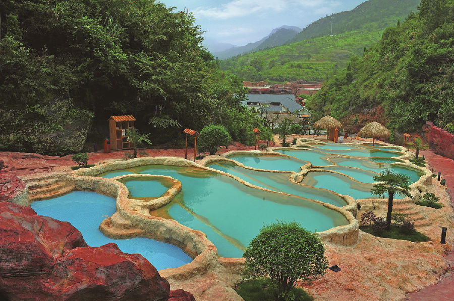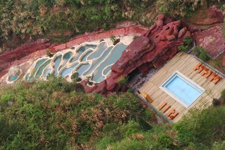 一、規(guī)劃設計要點1、項目構成:利用山谷打造高端峽谷溫泉;山腳打造中端泡浴池若干;利用山底原有田園瓜果打造溫泉田園風光;利用山前溪流打造漂流娛樂、溫泉會議酒店等。2、主要亮點:“紅、綠、藍”自然三色 凸現(xiàn)“天人合一”意境。項目充分利用丹霞地貌的紅色、森林的綠色和溫泉的藍色,實現(xiàn)巧妙景觀設計搭配。峽谷景觀溫泉,野奢潮流賣點;溪谷 “溫泉漂流”,創(chuàng)意新游憩方式。二、項目建設推進一期“野奢溫泉休閑”引爆人氣;二期“度假地產”盈利杠桿。(一期建成實景圖) (二期規(guī)劃效果圖)