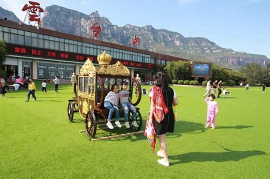 云臺山景區(qū)對百家?guī)r綜合服務(wù)中心進(jìn)行了改造提升,不僅在山門廣場鋪設(shè)了9000平方米的人工草坪,還增加了風(fēng)車擺件、噴泉、卡通造型等,儼然變成了一個歡樂的夢幻樂園。