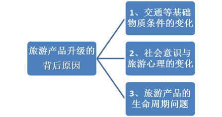 二、旅游產(chǎn)品升級的背后原因1、交通等基礎(chǔ)物質(zhì)條件的變化其實,傳統(tǒng)的觀光游和交通設(shè)施、住宿建設(shè)的落后也有一定關(guān)系; 隨著基礎(chǔ)設(shè)施建設(shè)水平提高,例如精品建筑對度假游的支撐、快捷交通對自駕游的支撐等等,都為產(chǎn)品升級換代提供了前提條件 2、社會意識與旅游心理的變化目前我國社會意識、社會階層正由一體化走向多元化。一些新觀念開始占據(jù)旅游市場主流,如享樂意識、環(huán)保意識、回歸意識。 相應(yīng)導(dǎo)致對一些新興產(chǎn)品的流行: 如異域情調(diào)產(chǎn)品,“洋人街”、“韓國城” 等; 如自然回歸產(chǎn)品,登山、露營等。 3、旅游產(chǎn)品的生命周期問題旅游地不一定具有生命周期,而旅游產(chǎn)品一定有生命周期(旅游地只是旅游產(chǎn)品的載體,旅游地的同一資源經(jīng)過不同方式的提升編排可能出現(xiàn)不同的產(chǎn)品)。 產(chǎn)品生命周期論,要求依據(jù)市場動態(tài),適時調(diào)整產(chǎn)品結(jié)構(gòu)和層次。 尤其是那些傳統(tǒng)的經(jīng)典觀光景區(qū),產(chǎn)品也需要周期性提升。目前國內(nèi)已經(jīng)有探索,例如張家界,新添加“玻璃棧道”這樣的人工奇景與原有自然美景相得益彰;再如長白上周邊打造度假區(qū),與傳統(tǒng)的天池觀光景區(qū)也是相互補充。