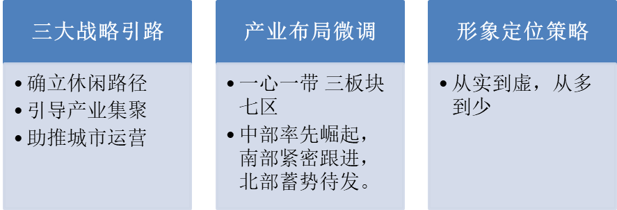 最終將旅游發(fā)展格局調(diào)整為“一心一帶三塊七區(qū)”(參見圖示)
