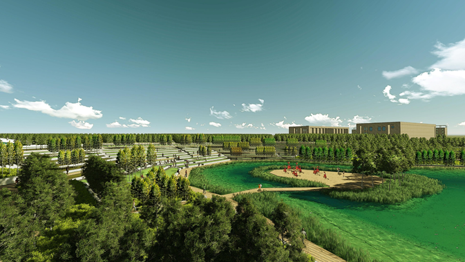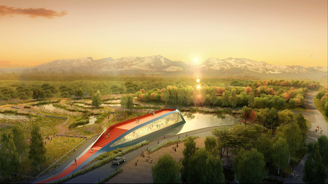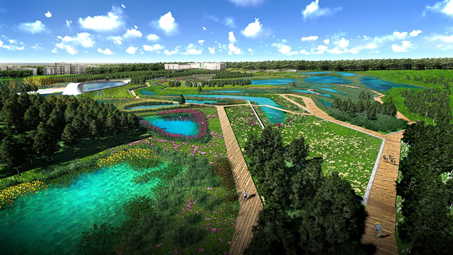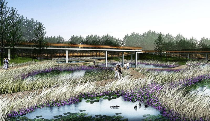 設(shè)計(jì)以最小干預(yù)為原則,采用整體保護(hù)、邊緣利用 的開發(fā)模式,集中力量建設(shè)城市邊緣的生態(tài)緩沖區(qū)。 打造一個(gè)“整體綠、局部精”的國(guó)家級(jí)濕地公園。