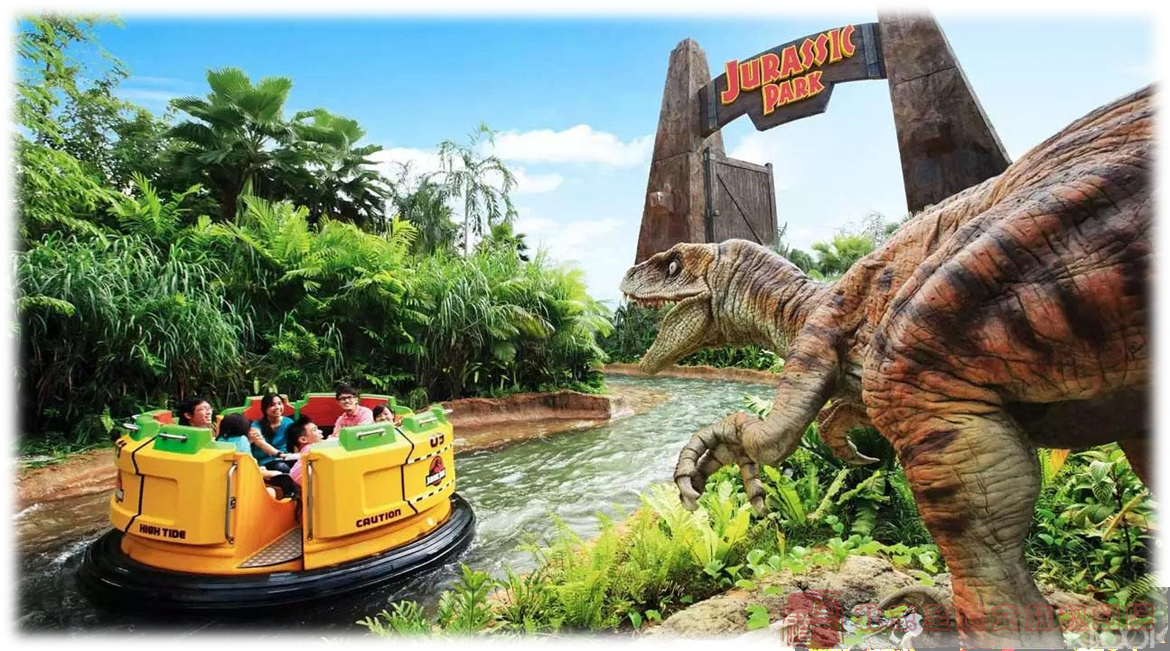 例如在環(huán)球影城主題公園中,“侏羅紀”這個影視IP,變成了侏羅紀漂流游樂項目,在人工河漂流節(jié)點中穿插仿真恐龍出沒。
