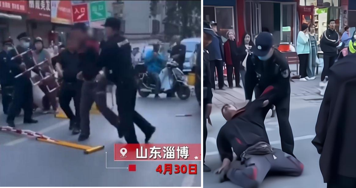 例如五一期間淄博一快遞員因限流無法送貨,被拒入場(chǎng)。爭(zhēng)執(zhí)過程中警察(保安)對(duì)快遞員的粗暴扭臂摁頭動(dòng)作,以及事后政府公文套路式的回復(fù),這一切都是那么的眼熟、耳熟。