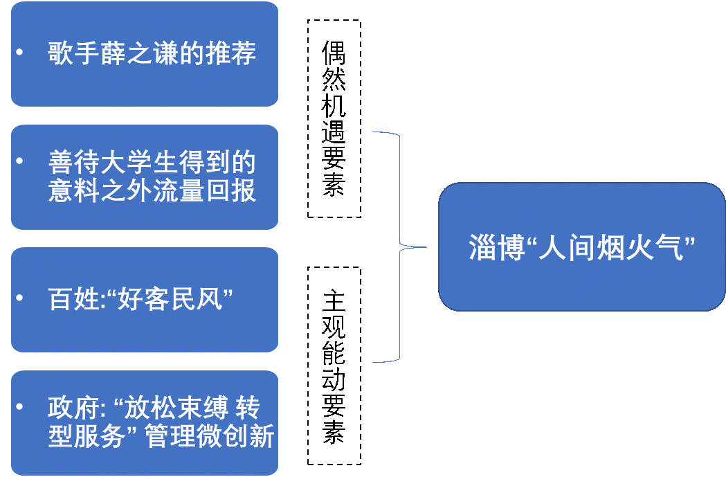 小結(jié):對(duì)比麗江與淄博,我們可以看出,麗江“小資情調(diào)”這一無形特種旅游資源的形成,外在機(jī)遇要素比重相當(dāng)大(麗江本地文脈地脈只起到藥引子作用);而淄博“人間煙火氣”這一無形特種旅游資源的形成,雖然外在偶然機(jī)遇要素也占比較大,但與麗江相比較,其內(nèi)在能動(dòng)要素的比重還是要大一點(diǎn)。(從發(fā)展旅游業(yè)角度,這并非好事,因?yàn)橹饔^能動(dòng)要素占比越大,意味著這一特種資源的可控性越不穩(wěn)定。這是后話,本文重點(diǎn)暫且不是討論淄博旅游發(fā)展規(guī)劃問題。)