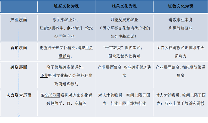 這樣說(shuō)似乎太抽象。我們舉兩個(gè)例子 ? 《秦長(zhǎng)城旅游開(kāi)發(fā)策劃》 面對(duì)半人高石頭墻式的秦長(zhǎng)城,我們揚(yáng)長(zhǎng)避短,通過(guò)挖掘河套平原區(qū)域文化特質(zhì),賦予項(xiàng)目“萬(wàn)里長(zhǎng)城之母,民族融合見(jiàn)證”的主題定位。這樣一來(lái)“以虛帶實(shí)”形成一條貫穿開(kāi)發(fā)的主題線(xiàn)索,使得項(xiàng)目迎刃而解: 對(duì)于規(guī)劃設(shè)計(jì)層面是設(shè)計(jì)理念——例如把旅游服務(wù)中心設(shè)計(jì)成 “長(zhǎng)城互市”風(fēng)貌; 對(duì)市場(chǎng)營(yíng)銷(xiāo)而言是推廣口號(hào)——萬(wàn)里長(zhǎng)城之母,千年塞上風(fēng)云; 對(duì)于運(yùn)作策劃層面是資源整合——例如整合民委、學(xué)界等力量,打造“長(zhǎng)城·見(jiàn)證”博覽館;再如基于“民族融合象征”主題的不謀而合獲得電影《長(zhǎng)城》的拍攝機(jī)遇等。 ? 《函谷關(guān)文創(chuàng)園策劃》 在該項(xiàng)目的道教、道家、名關(guān)三大文脈中,我們力排眾議選取“道家文化”作為文創(chuàng)園區(qū)的開(kāi)發(fā)主題定位。為什么呢?也正是因?yàn)榈兰椅幕黝},從產(chǎn)業(yè)規(guī)劃、到營(yíng)銷(xiāo)造勢(shì)、到招商渠道,具備更強(qiáng)大的主題貫穿性,帶動(dòng)性,能使得項(xiàng)目迎刃而解: