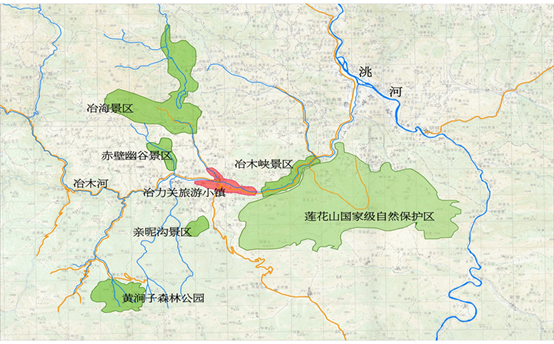 冶力關(guān)小鎮(zhèn):連接各個(gè)風(fēng)景區(qū)的交通樞紐,承擔(dān)景區(qū)主要旅游服務(wù)功能,輻射周邊景區(qū)、聯(lián)動周邊游線。