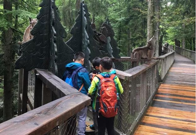 上午與德國孩子一起徒步森林或游戲;下午參觀歐洲最高樹屋